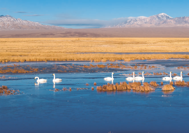 初冬时节,作为候鸟迁徙的中亚通道和东亚—澳大利亚通道两条线路的重要中转站,河西走廊吸引了大量候鸟在此停歇休憩、越冬栖息。