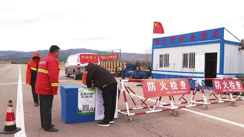 在朔城区张蔡庄乡西山森林大道的防火卡口,工作人员正在对进入林区的车辆和人员进行严格的排查和登记。确保火种不上山,火源不入林,全力筑牢森林防火防线。