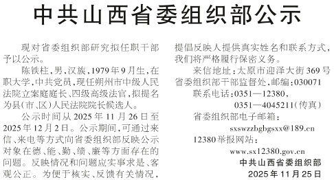 中共山西省委组织部公示