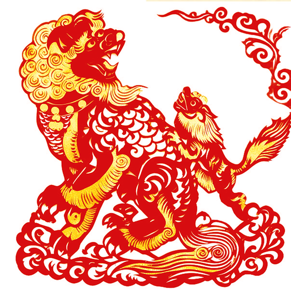 工艺技法上,作品以经典剪纸工艺为根基,采用中华民族传统意识中象征驱邪纳福的正红色,同时,创新性地引入局部鎏金套色技法,突破了传统剪纸的单一色彩局限:狮子卷曲的鬃毛如金色流云般闪耀,四肢点缀的流苏纹饰更显飘逸灵动,在完整保留剪纸“镂空透雕”工艺精髓的基础上,通过璀璨的色彩分层,极大地增强了画面的层次感与视觉张力,令作品在民间艺术特有的热闹喜庆之外,平添了一份雅致隽永的装饰韵味。