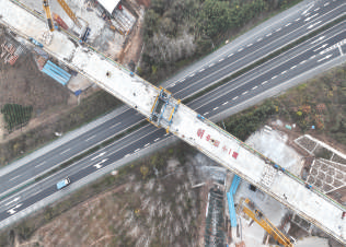 合龙后的合武高铁跨沪蓉高速特大桥。12月2日,随着最后一车混凝土浇筑完成,由中铁十一局承建的合武高铁跨沪蓉高速特大桥顺利实现合龙,标志着项目建设取得阶段性成果,为全线按期建成通车奠定了坚实基础。该桥为合武高铁全线控制性工程,全长1940.57米。合肥至武汉高速铁路是我国“八纵八横”高铁网沿江通道的重要组成部分,设计时速350公里。