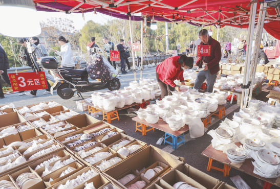 顾客在乾潭镇“万乐”乡村市集上选购商品。12月6日,浙江建德乾潭镇一年一度的“万乐”系列乡村市集热闹开启。在近两公里的沿江步道上,300余个摊位蜿蜒排列,日用品、农产品、美食、文创等商品琳琅满目,现场还有戏曲演出和人才市集,是当地岁末最热闹的乡村市集。 新华社记者 徐昱 摄