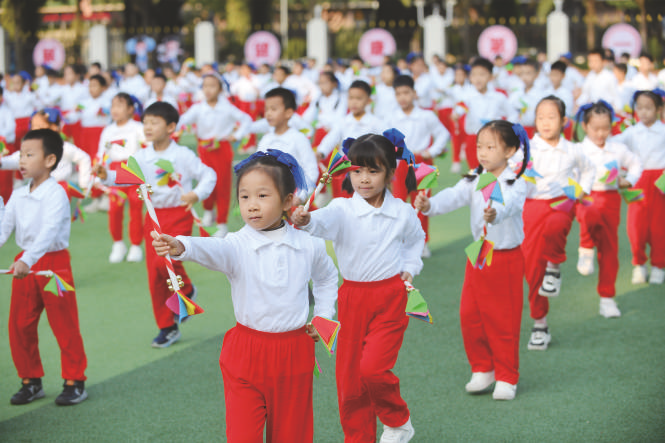 在广西南宁市滨湖路小学教育集团滨湖校区,学生在“体育节”开幕式上表演团体操。12月9日,广西南宁市滨湖路小学教育集团滨湖校区举行2025年秋季“体育节”开幕式,全校师生以独具特色的团体操表演,生动诠释体育、艺术与思政教育的深度融合,展现团结奋进、朝气蓬勃的精神风貌。 新华社记者 陆波岸 摄