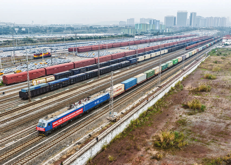12月15日,一列装载化工产品、摩托车零配件等货物的中新多式联运示范项目重庆—东南亚班列缓缓驶出重庆鱼嘴站,将向南经广西钦州以铁海联运方式发往新加坡。与此同时,另一条轨道上,一列装载汽车KD件的中新多式联运示范项目重庆—中亚国际班列同步发车,将向西经阿拉山口以国际铁路联运方式发往哈萨克斯坦。据悉,此次开行的双向班列将有机衔接中欧班列和陆海新通道,是中新共建“一带一路”的生动实践,将助力构建中国西部联结东盟乃至欧亚大陆的贸易走廊,为跨国合作与区域协同发展注入新动能。 新华社记者 唐奕 摄