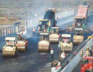 中铁十一局工作人员进行沥青摊铺作业。12月16日,随着最后一车沥青混合料摊铺碾压成型,由湖北交投投资建设、中铁十一局参建的新港高速双柳长江大桥及接线工程全线沥青摊铺完成,项目建设进入通车前的冲刺阶段。作为武汉都市圈环线高速公路的重要组成部分,新港高速公路双柳长江大桥及接线工程连接武汉新洲区和鄂州华容区,线路全长约35公里,设计时速120公里。