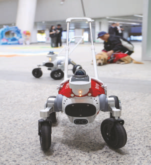 近日,深圳地铁首次试点启用智能导盲犬“小蒜”,以科技为视障人士地铁出行提供便利。深圳地铁在黄木岗交通枢纽13口、14口旁的无障碍垂直电梯处分别设置智能导盲犬服务点。“小蒜”可以根据视障乘客的口头指令,自主完成路径规划、精准导航、智能避障等工作,引导乘客到达目的服务点。