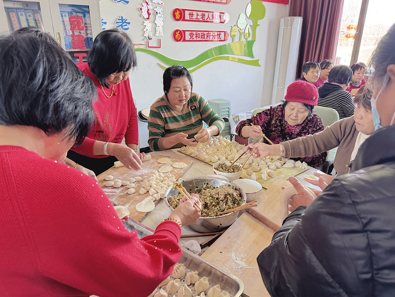 日前,怀仁市芦子沟社区举行以“职工家属齐欢聚,冬至社区暖如春”为主题的冬至包饺子活动。图为社区工作人员、热心居民与煤矿职工家属们齐聚一堂,为奋战在井下生产一线的矿工们包制象征团圆与祝福的饺子。 张佳乐 摄