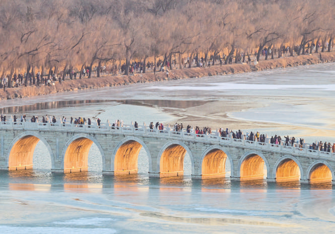 这是颐和园十七孔桥“金光穿洞”美景。12月21日是冬至节气,北京颐和园十七孔桥的“金光穿洞”景观吸引了众多游客与摄影爱好者观赏拍摄。