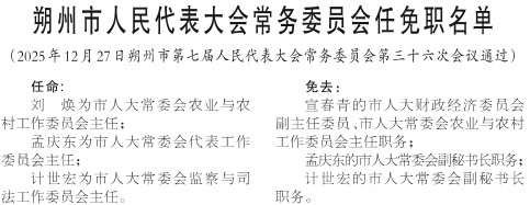 朔州市人民代表大会常务委员会任免职名单