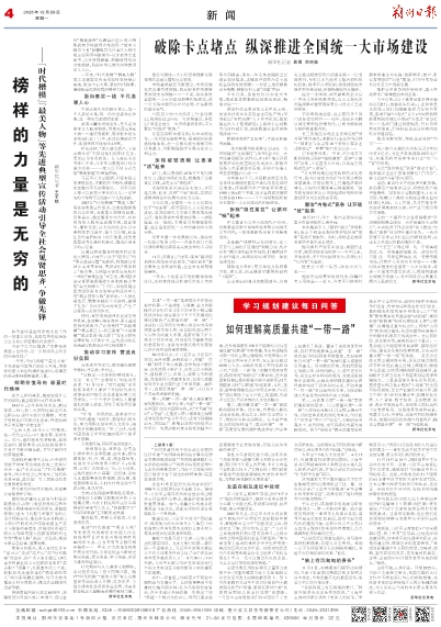 共建“一带一路”是我国改革开放后提出的第一个全球性、大规模、全方位国际经济合作倡议。《中共中央关于制定国民经济和社会发展第十五个五年规划的建议》强调:“高质量共建‘一带一路’。”这是以习近平同志为核心的党中央深刻洞察全球发展大势、统筹国内国际两个大局作出的重大部署,是新形势下扩大高水平对外开放、开创合作共赢新局面的重要路径,也是为中国式现代化营造良好外部环境的重要举措。
