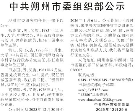 中共朔州市委组织部公示
