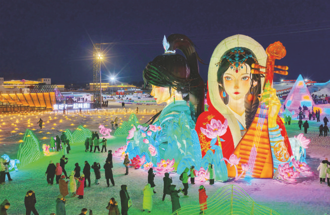 人们在呼和浩特第五届欢乐冰雪节上游玩(2025年12月31日摄,无人机照片)。 自2025年12月开始,呼和浩特市陆续推出300余项融合冰雪运动、文化体验、潮流消费等内容的冬季活动,在深化文旅融合的同时,激发冬季消费活力。