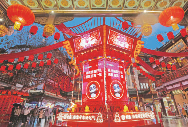 在豫园商城黄金广场拍摄的巨型走马灯。1月26日晚,以“以梦为马,旷野生花”为主题的2026上海豫园民俗艺术灯会正式亮灯,开启为期36天的海派年味视觉盛宴。
