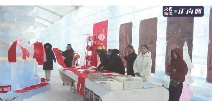 在右玉县文旅推荐官王晓娟的热情陪同与专业推荐下,直播除了展现超长冰滑梯的极致体验,还带领观众领略了当地的羊杂、盐煎羊肉等特色美食,以及冰上自行车、冰上陀螺等丰富的冰面游乐设施。造型各异的冰城堡是现场另一大亮点,工匠们凭借精湛的技艺,将一块块普通的冰块雕琢成美轮美奂的艺术品。其中,以马元素为主题的冰雕格外引人注目,栩栩如生的骏马仿佛在冰面上奔腾驰骋。在冰城堡内,当地的书法爱好者们齐聚一堂,挥毫泼墨,为游客书写一副副寓意吉祥的春联。红红的春联与洁白的冰雪相互映衬,不仅为冰雪世界增添了浓厚的文化气息,更传递出新春的美好祝福。