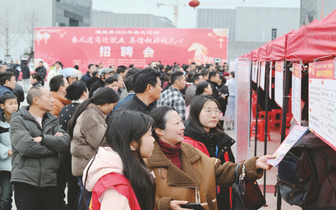 2月24日,求职者在湖北省咸宁市通城县“春风行动”大型招聘会上寻找适合自己的就业岗位。新春伊始,各地举办多场新春招聘活动,吸引众多求职者前来咨询应聘。 新华社发 刘建平 摄