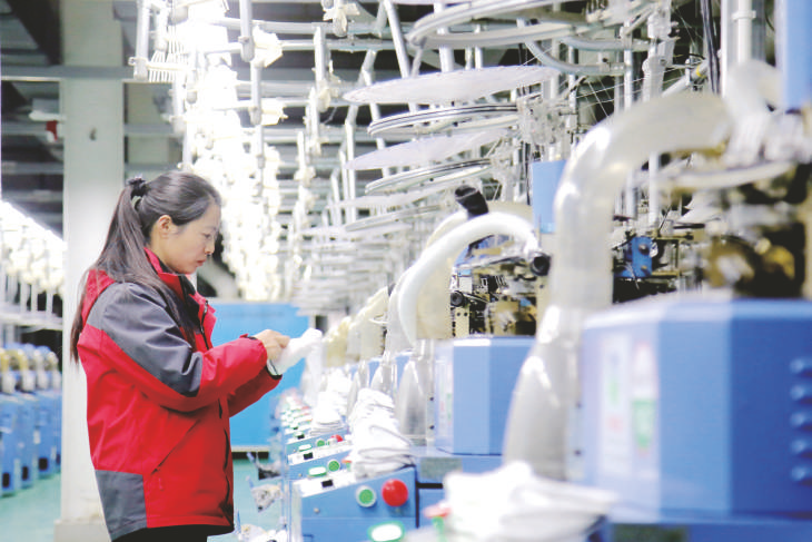 2月25日,在湖北省十堰市郧阳区一家智能纺织企业,工人在生产线上作业。新春开年,各地企业纷纷按下复工复产“快进键”,车间内机器轰鸣、生产线全速运转,为全年经济发展夯实起步根基。 新华社发 曹忠宏 摄