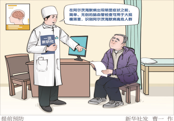 新华社北京电 美国一项新研究显示,在阿尔茨海默病出现明显症状之前,患者的脑血管功能就已经下降,简单、无创的脑血管检查可用于大规模筛查,识别阿尔茨海默病高危人群。
