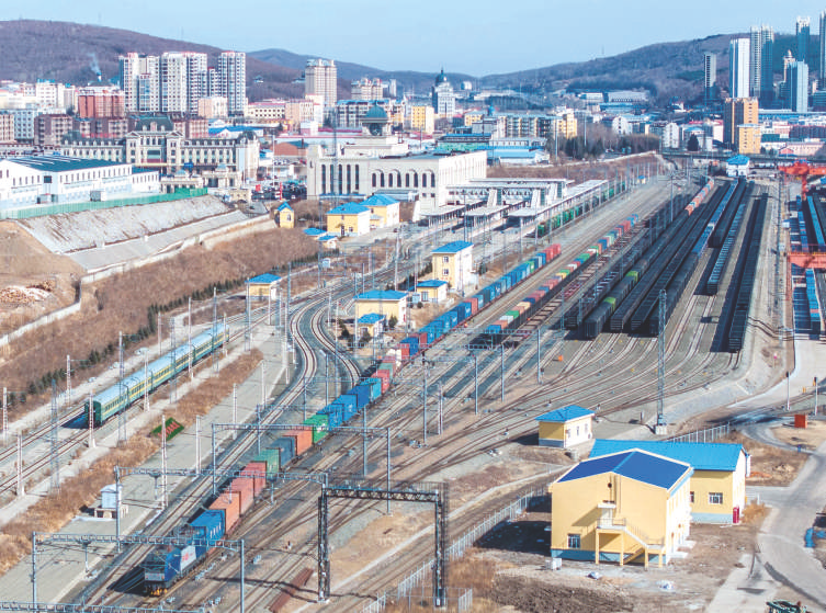 中欧班列东通道由满洲里、绥芬河、同江铁路口岸组成,目前有27条班列通行线路,覆盖波兰、德国、荷兰等14个国家,联通国内长沙、郑州、成都等60余个城市。