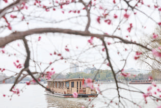 2月25日,游客乘船在浙江省嘉兴市南湖景区游玩。春意渐浓,各地美景吸引人们外出游玩赏景,尽享春日好时光。 新华社发 金鹏 摄