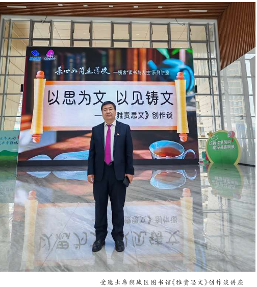这一年,我结合自身经历撰写的《雅贵思文》一书也受到各方点评。2025年2月11日,东南大学校友总会官网以“行则将至,以质致远——东南大学山西校友张贵文所著《雅贵思文》一书正式出版”进行报道,东南大学山西校友会举行“新春读书分享会暨张贵文校友《雅贵思文》新书座谈交流”,4月受邀出席朔城区图书馆“素心如简是清欢——慢舍读书与人生系列”之“以思为文,以见铸文——《雅贵思文》创作谈”讲座……