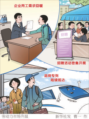 企业用工需求回暖,返岗专列陆续抵达,招聘活动密集开展……马年开工首周,各地劳动力市场逐步升温,一派人勤春早繁忙景象。