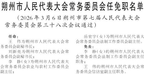 朔州市人民代表大会常务委员会任免职名单