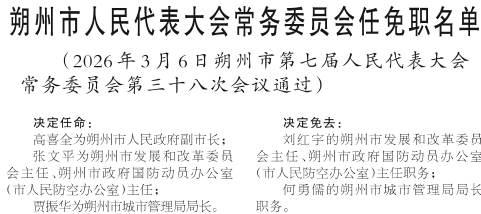 朔州市人民代表大会常务委员会任免职名单