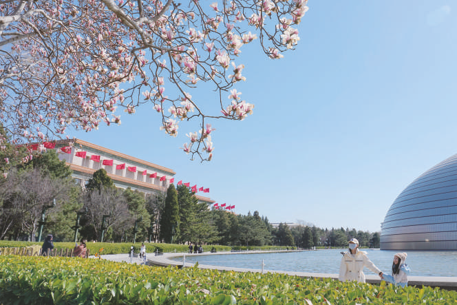 3月9日,游客在国家大剧院旁欣赏盛开的玉兰花。近日,随着气温回升,北京街头的玉兰花渐次开放。 新华社记者 鞠焕宗 摄