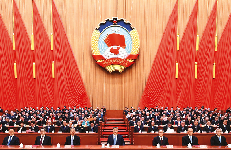 3月11日上午,中国人民政治协商会议第十四届全国委员会第四次会议在北京人民大会堂闭幕。全国政协主席王沪宁主持闭幕会并讲话。 新华社记者 黄敬文 摄