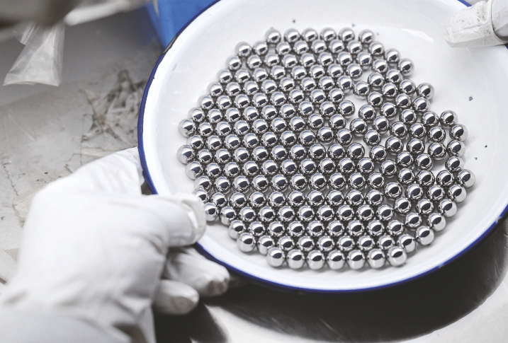 在灵璧轴承产业园内的一家企业,工作人员对轴承钢球进行人工抽检。