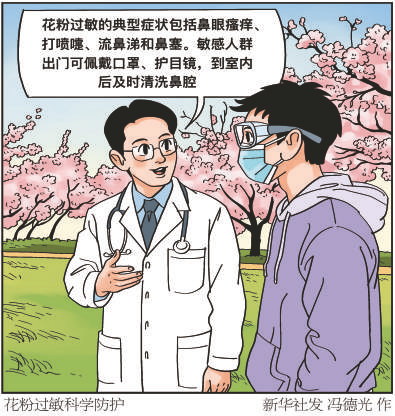 专家指出,花粉过敏的典型症状包括鼻眼瘙痒、打喷嚏、流鼻涕和鼻塞。敏感人群出门可佩戴口罩、护目镜,到室内后及时清洗鼻腔。口服或鼻喷抗过敏药物通常能缓解症状,患者可在花粉期到来前1至2周采取预防措施并使用药物,症状未缓解时要及时就诊。