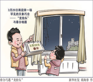 新华社南京电(记者 王珏玢 邱冰清) 春分平昼夜,“苍龙”正“抬头”。3月20日将迎来一场罕见的天象巧合——“龙抬头”与春分相遇。同为春季重要节点,二者相遇概率极低,本世纪仅有三次,上一次是在2015年3月21日,下一次则要等到2045年3月20日。