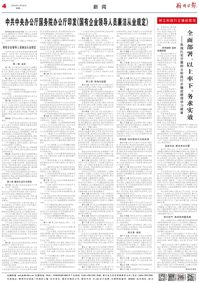 中共中央办公厅国务院办公厅印发《国有企业领导人员廉洁从业规定》