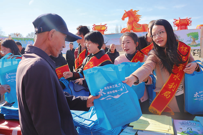 在第三十四届“世界水日”暨第三十九届“中国水周”来临之际,怀仁市开展集中宣传活动,广泛普及水法律法规和节水护水知识,营造全社会关心水、节约水、保护水的浓厚氛围。 王文君 摄