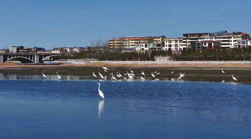 白鹭“组团”打卡朔州七里河公园