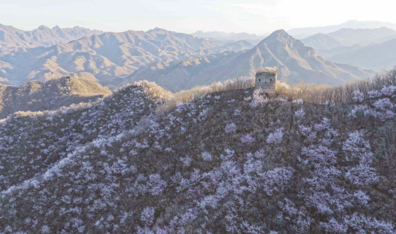 近日,随着气温回暖,河北省唐山市迁西县的长城周边山花烂漫,美如画卷。 新华社发 刘满仓 摄